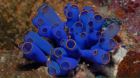That is a sea squirt. In my opinion its bright colors make it a delight to the eye, but more than its aesthetic appeal it carries an interesting characteristic—the sea squirt upon reaching adulthood will eat its own brain. The matured sea squirt has literally lost its mind.